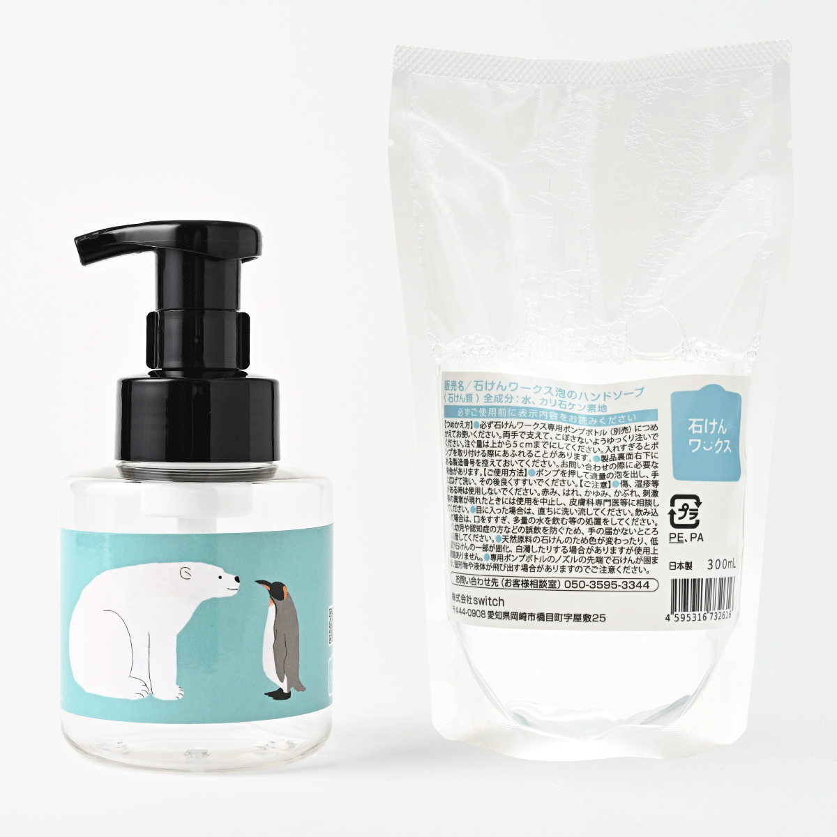 石けんワークス 無添加水筒洗い泡石けんは、お茶や、飲み物が入った水筒を洗うのに最適化した無添加石けんでできています。だから手荒れが気になる方にもおすすめ。