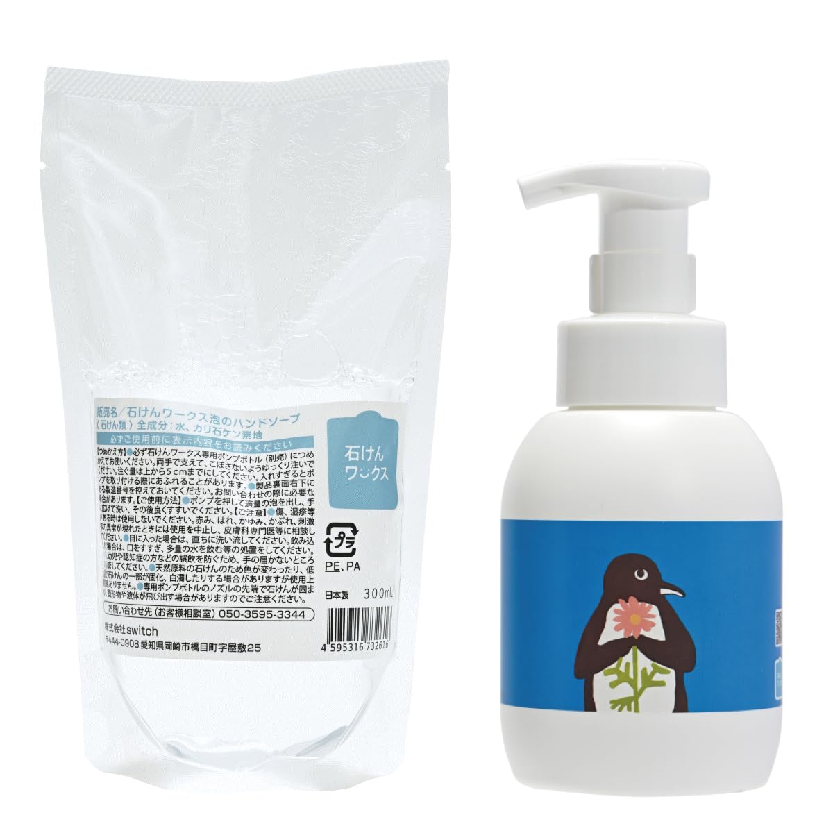 【詰め替え用 + 専用 泡容器 】泡ハンドつめかえ用300mL+泡用 ポンプ容器 350mL 「ペンギンさんとピンクデイジー」(rs300+35dp021)